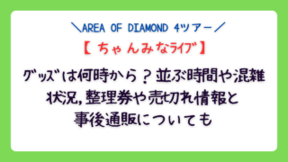 ちゃんみなのAREA OF DIAMOND 4ツアー、特に3月25・26日の有明アリーナ公演を控え、グッズ情報がファンの間で大きな話題です。この記事では、販売開始時間や実際の並び時間、混雑具合、整理券の有無、過去公演の売り切れ状況、事後通販...