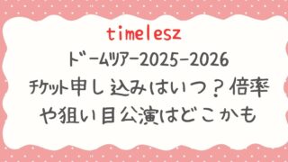エンタメ timeleszドームツアー2025-2026チケット申し込みはいつ?倍率や狙い目公演はどこかも 待望のtimelesz(タイムレス)初のドームツアー「We’re timelesz LIVE TOUR 2025-2026 episode 1 FAM DOME」が、2025年12月から2026年2月にかけて開催されます。ファンにとっては見... 2025.08.26 エンタメ