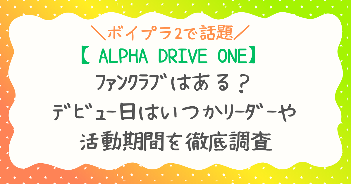 今回はそんなALPHA DRIVE ONEのファンクラブ情報から、注目のデビュー日、活動期間、さらにメンバー全員のプロフィール、リーダー候補情報まで、最新の情報を分かりやすくまとめてお伝えします。