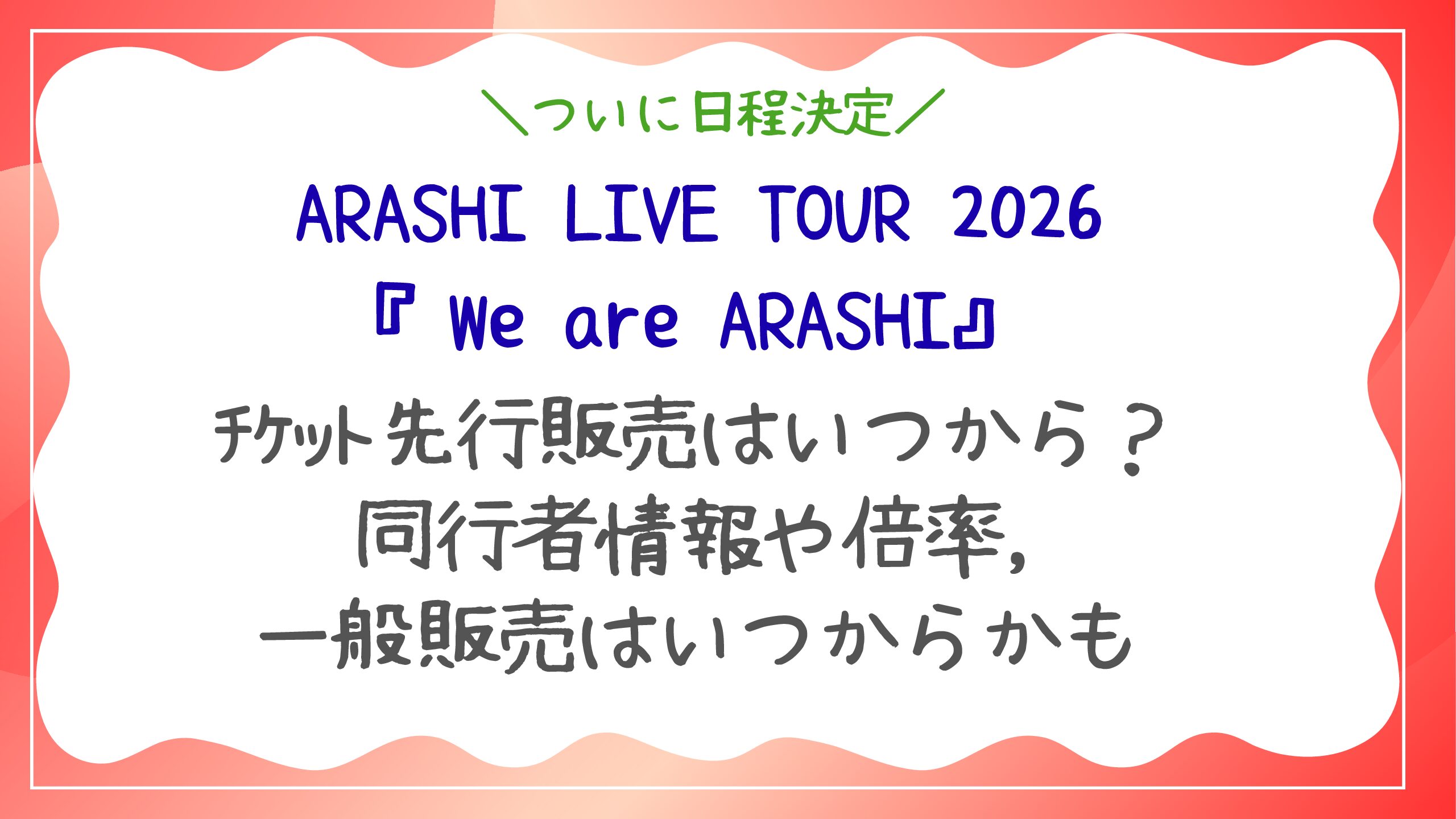 嵐が2026年春に開催するラストライブツアー「ARASHI LIVE TOUR 2026『We are ARASHI』」の開催が発表され、ファンの間では熱い期待と興奮が広がっています。