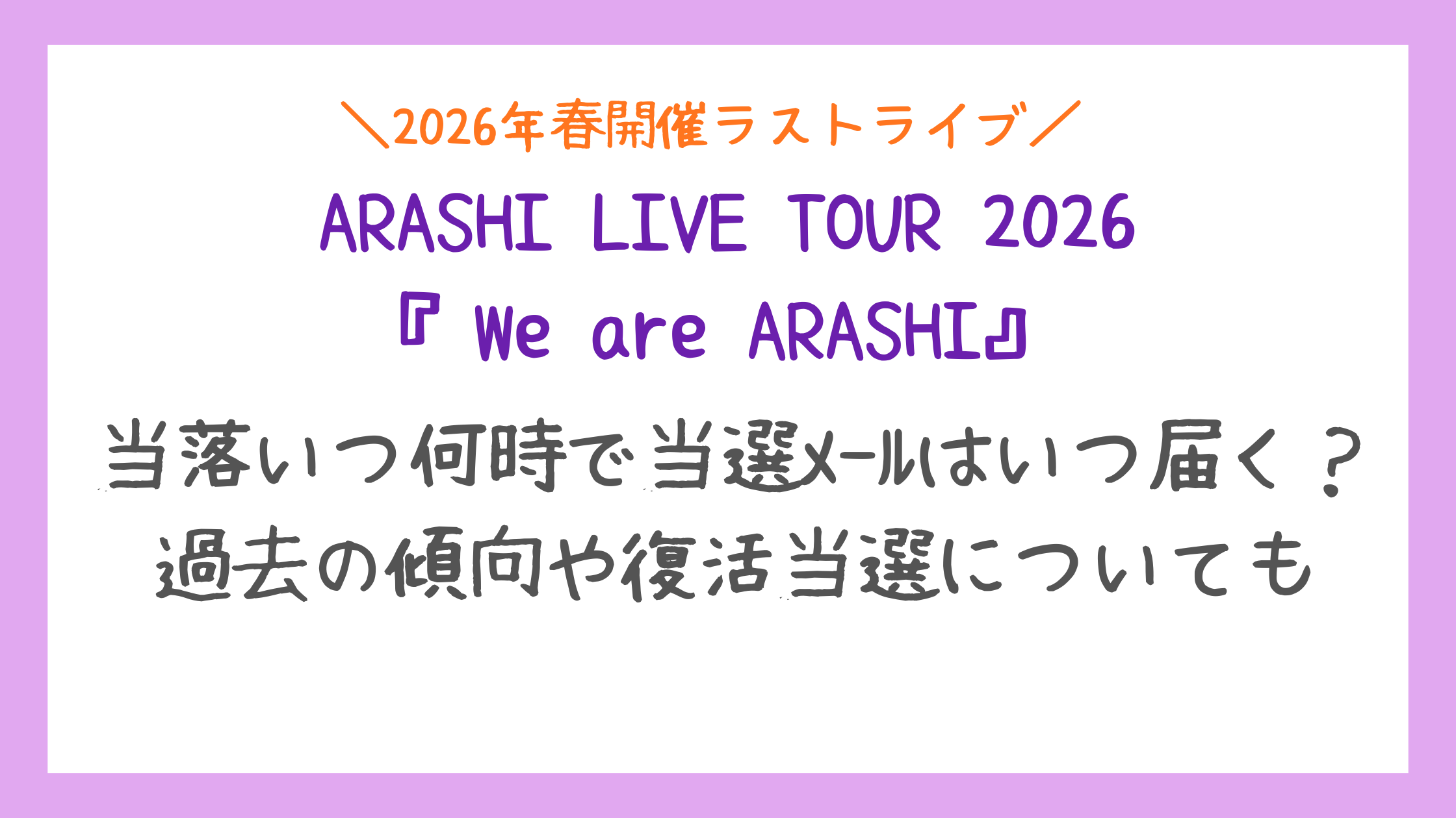 今回は、嵐ラストライブ2026の当落発表について、最新情報とともに過去のライブの傾向などを解説します。