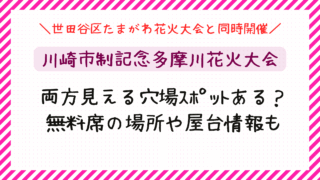 おでかけ 多摩川花火大会2025(川崎)両方見える穴場スポットある?無料席の場所や屋台情報も 毎年秋になると、多摩川の両岸、川崎市と世田谷区で同時に開催される「多摩川花火大会」は、多くの人々が待ち望む一大イベントです。2025年も10月4日に開催され、川崎市制記念多摩川花火大会と世田谷区たまがわ花火大会の両方が同時に花火を打ち上げ、... 2025.10.02 おでかけ