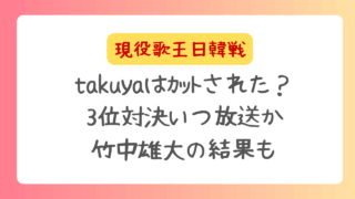 現役歌王日韓戦takuyaはカットされた?3位対決いつ放送か,竹中雄大の結果も