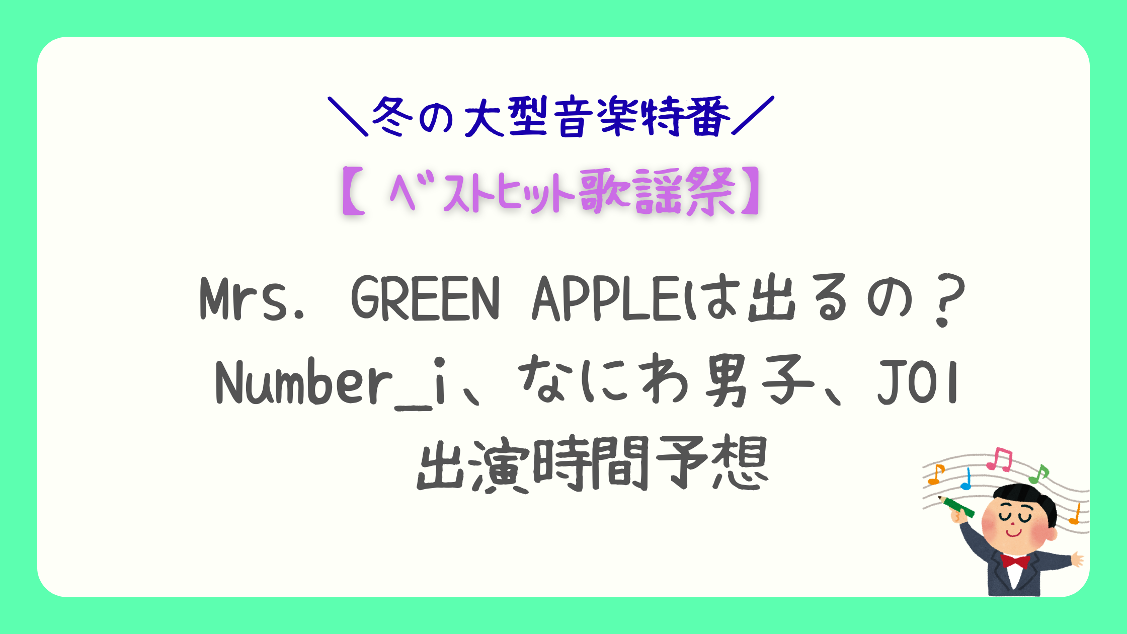ファンからの注目は、昨年出演の有無や最新の活躍を反映した出演者たちのパフォーマンス、さらに気になるミセスグリーンアップルの出演状況や、人気グループNumber_i、なにわ男子、JO1の出演時間や歌唱曲目の予想に集まっています。
