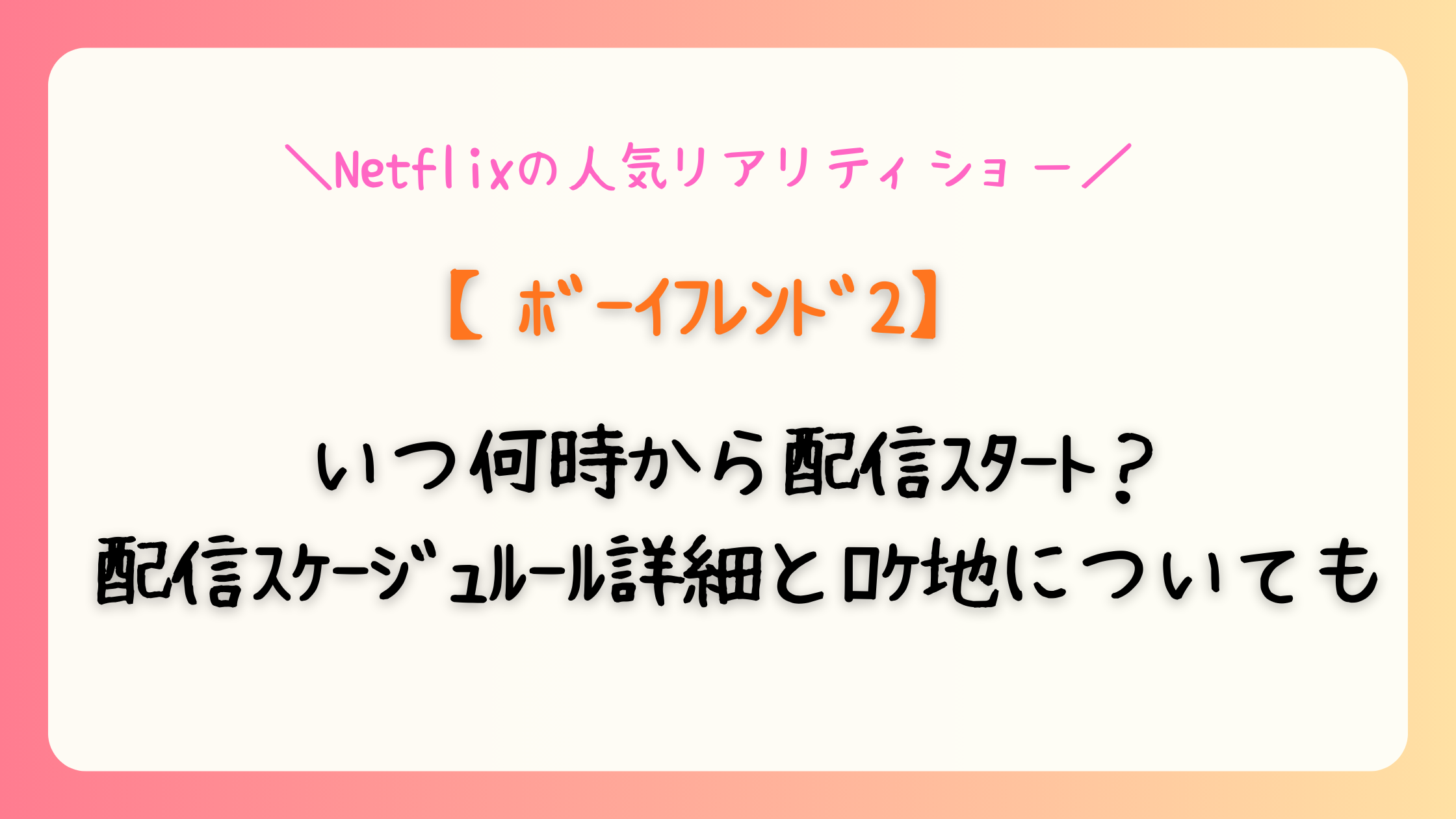 こんにちは、みなさん。Netflixの人気リアリティショー「ボーイフレンド」シーズン2が、いよいよ間近に迫ってきましたね。