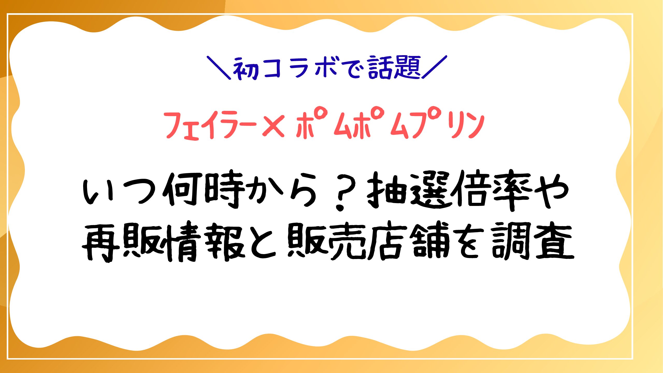 グッズ フェイラー×ポムポムプリンいつ何時から?抽選倍率や再販情報と販売店舗を調査 今年の秋、フェイラーファン・サンリオファン待望の「フェイラー×ポムポムプリン」のコラボがついに実現します。これまでフェイラーとサンリオキャラクターのコラボは何度か行われてきましたが、ポムポムプリン単独でのラインナップは今回が初。公式発表直後... 2025.10.02 グッズ