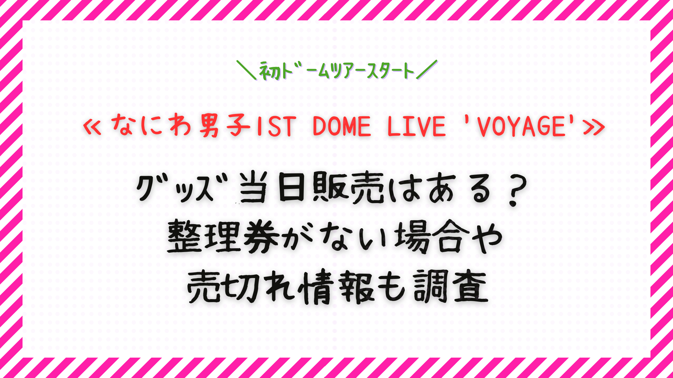 なにわ男子ドームグッズの当日販売は間違いなくありますが、整理券必須で油断禁物です。売切れ回避のポイントを箇条書きでまとめます。