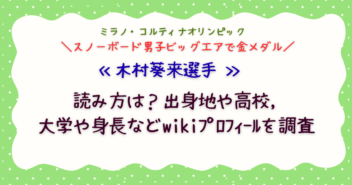 木村葵来選手のwikiプロフィールを調査した結果をまとめます。