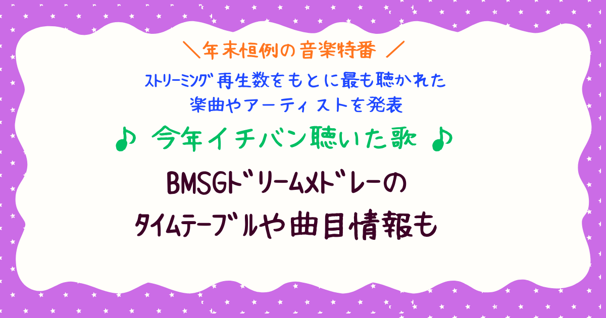 年末恒例の音楽特番「今年イチバン聴いた歌2025」がいよいよ12月29日に放送されます。今年もストリーミング再生数をもとに、2025年に最も聴かれた楽曲やアーティストを発表するというコンセプトはそのままに、出演アーティストの豪華さや、BMSGドリームメドレーのような特別ステージが注目を集めています。