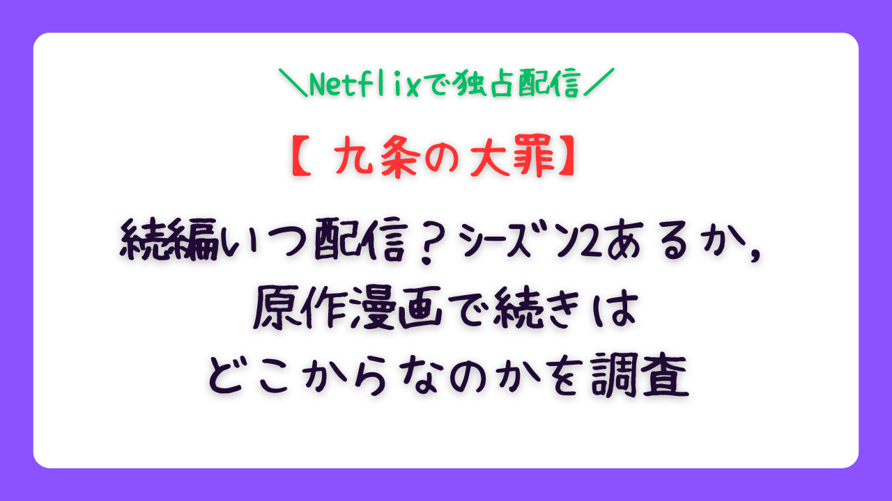 - タイトル: Netflixシリーズ「九条の大罪」
