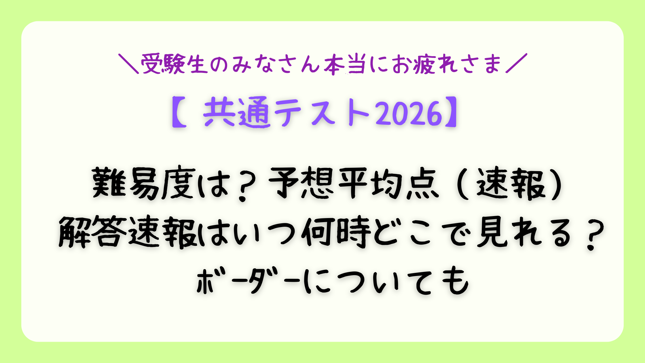 共通テスト2026は科目差が大きく「やや難化」傾向でしたが、平均点速報は今夜公開予定です。解答も夜8時頃から各サイトで確認を。ボーダーは合格の目安として活用しましょう。