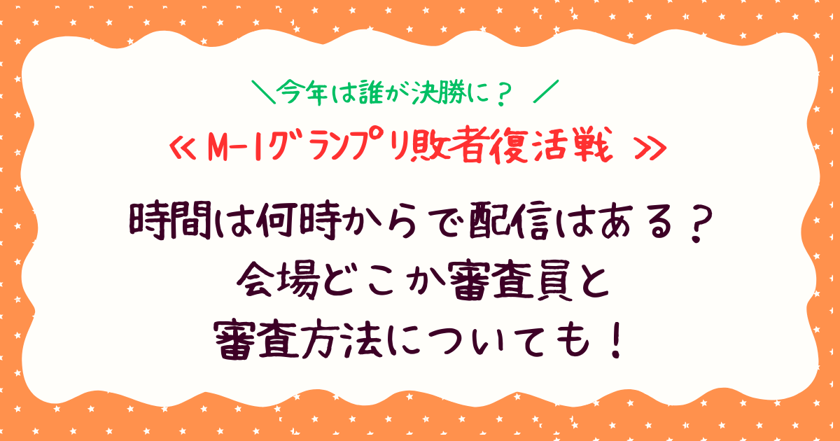 この記事では、敗者復活戦の時間帯やテレビ・配信の情報、会場、そして司会者・審査員、審査方法まで、すべて最新情報をもとに詳しく解説していきます。