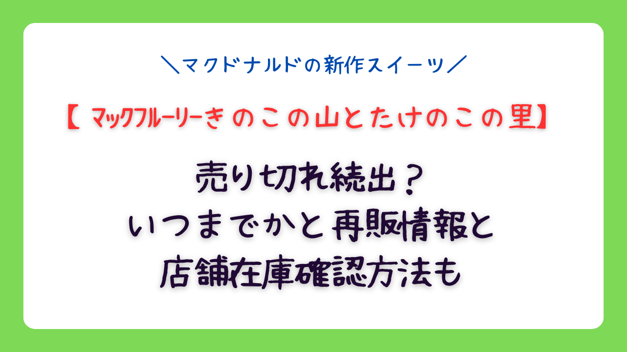 マックフルーリー きのこの山とたけのこの里は、発売直後の売り切れラッシュで話題ですが、3月上旬までの予定があり再販期待大です。在庫確認アプリを活用し、朝イチ狙いでチャンスを掴みましょう。