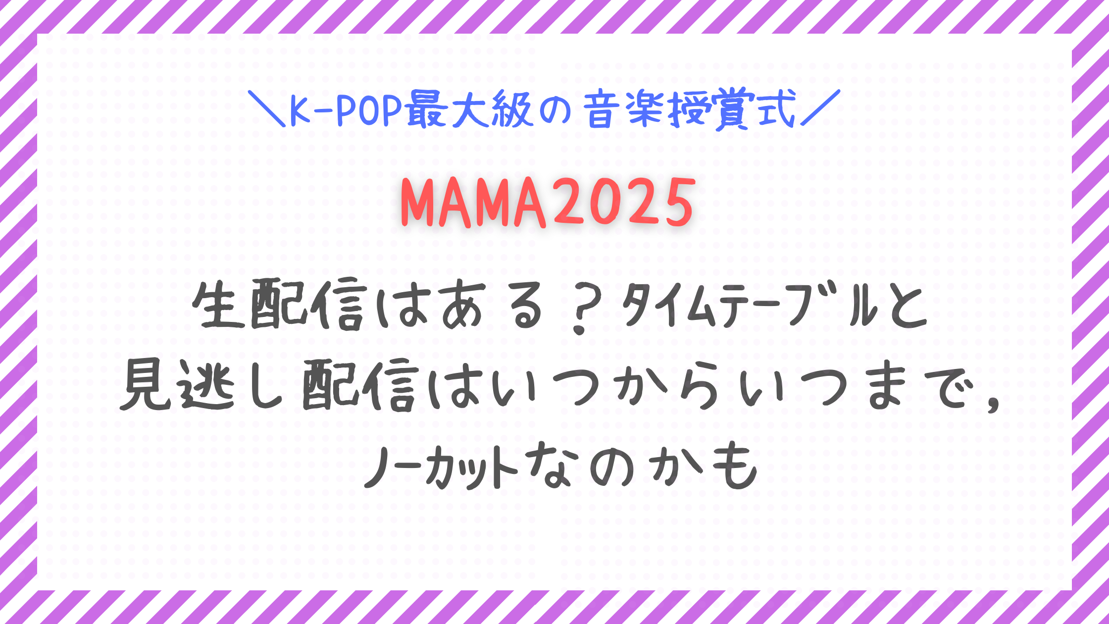 ここでは、MAMA2025の生配信の有無、視聴開始時間、見逃し配信の期間、そしてノーカットかどうかを徹底調査してお伝えします。