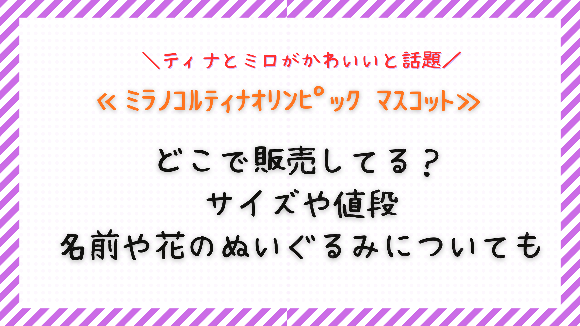 ミラノ・コルティナ2026冬季オリンピックのマスコット、ティナとミロが話題です。この記事ではマスコットの名前や特徴から、表彰式で渡されるぬいぐるみ、花のキャラクター「ザ・フロ」の詳細、販売場所、サイズごとの値段まで徹底調査しました。