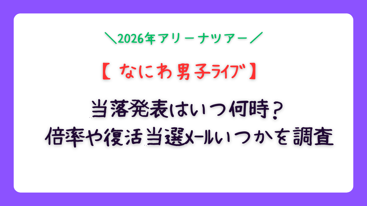 今回の調査から、なにわ男子LIVE TOUR 2026「ND⁵」のFC先行当落発表と倍率、復活当選に関する重要なポイントを整理しました。