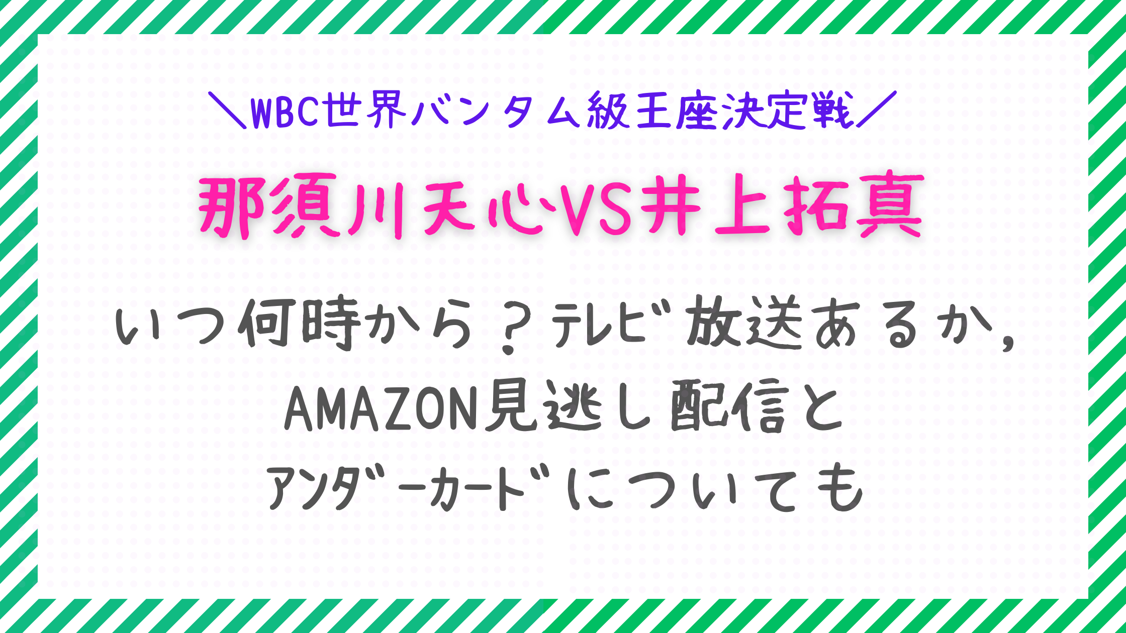 本記事では、試合の日時や開始時間、テレビ放送の有無、Amazon Prime Videoでの見逃し配信、さらには注目のアンダーカード(前座試合)について詳しく解説します。