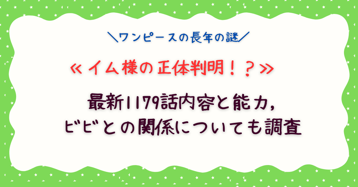 ワンピースの長年の謎の一つであるイム様の正体が、ついに最新1179話で明らかになりました。8年もの間シルエットのみで描かれてきた黒幕の真の姿、能力、そしてビビとの深い関係性まで、すべての謎が解き明かされました。