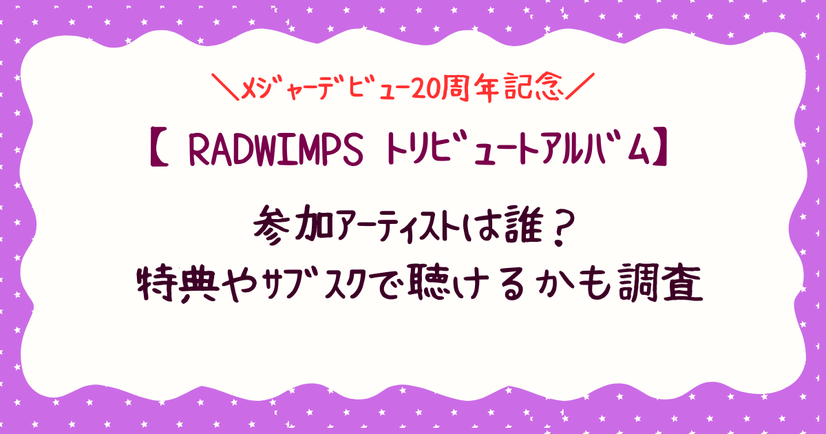 今回は『Dear Jubilee -RADWIMPS TRIBUTE-』の参加アーティスト、サブスク配信、発売日や特典について最新情報をまとめました。