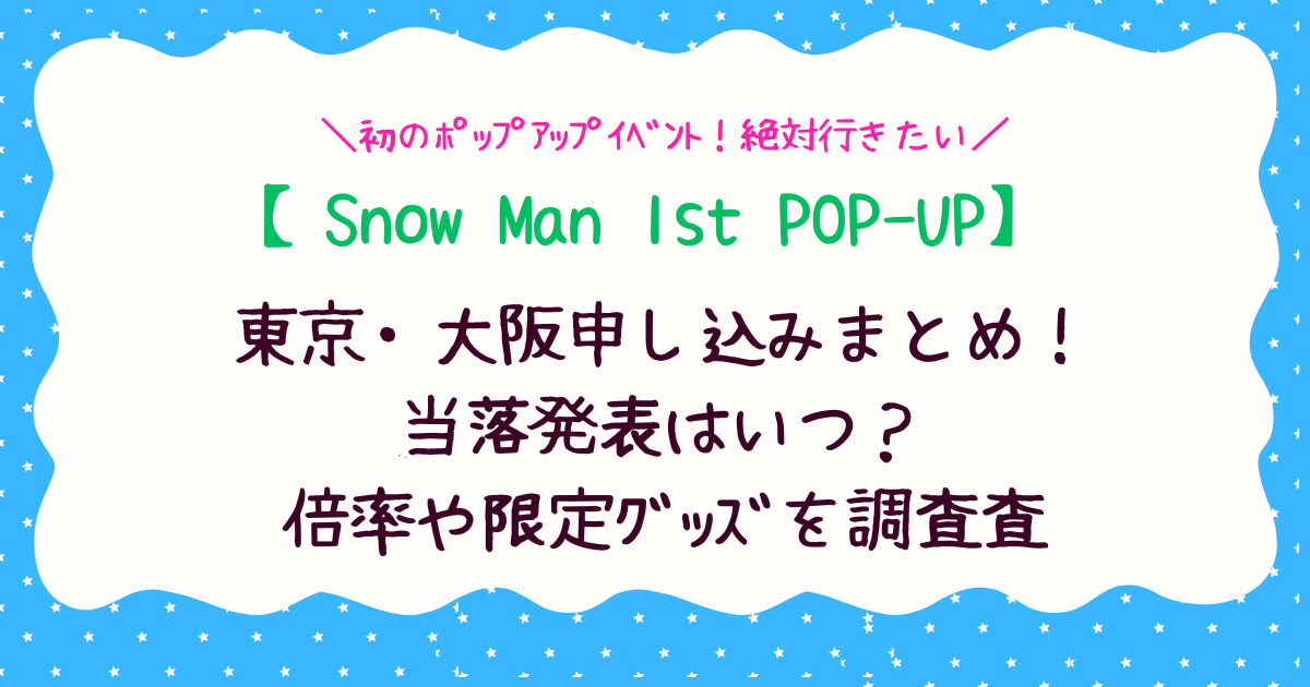 Snow Manファンの間で大きな話題となっている「Snow Man 1st POP-UP」が、ついに大阪と東京で開催されることが発表されました。