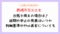 - 台風による欠航でホテルに泊まる場合の宿泊代は原則自己負担。ただし保険の補償対象になる場合もあるため、旅行保険やクレジットカード付帯保険の確認が必要。