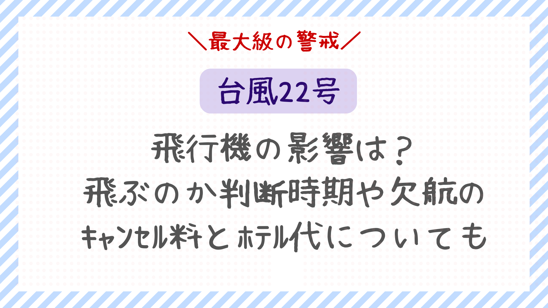 - 台風22号による飛行機の影響は、10月8日頃から天候悪化が始まり、9日を中心に遅延・欠航が増える可能性が高い。