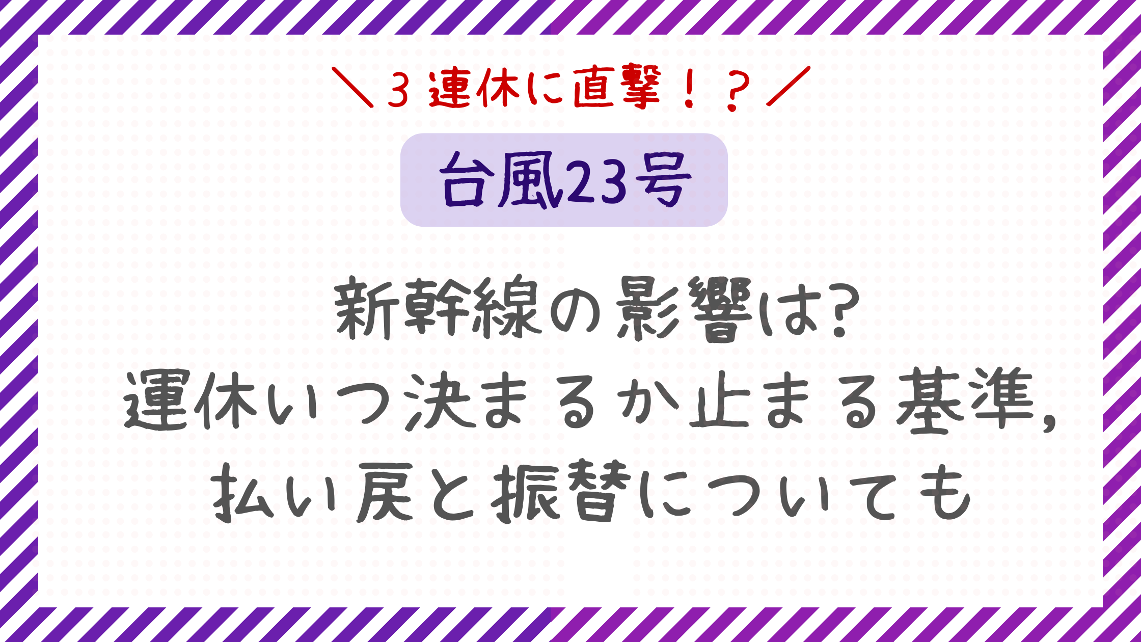 この記事では、台風23号2025年の新幹線運行への影響と関連情報を最新データをもとにわかりやすくまとめました。
