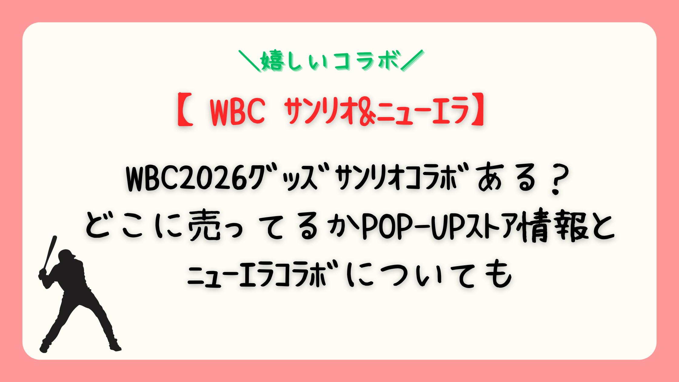 WBC2026グッズサンリオコラボある?どこに売ってるかPOP-UPストア情報とニューエラコラボについても