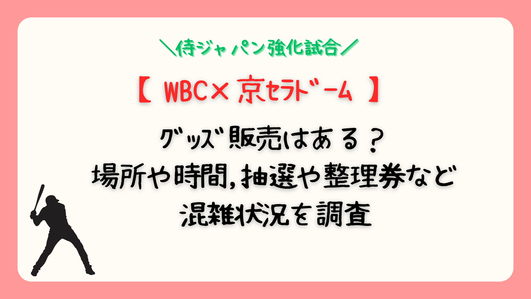 WBC2026の京セラドーム大阪でのグッズ販売について、場所・時間・取り扱い商品・抽選方法・混雑状況を徹底調査しました。
