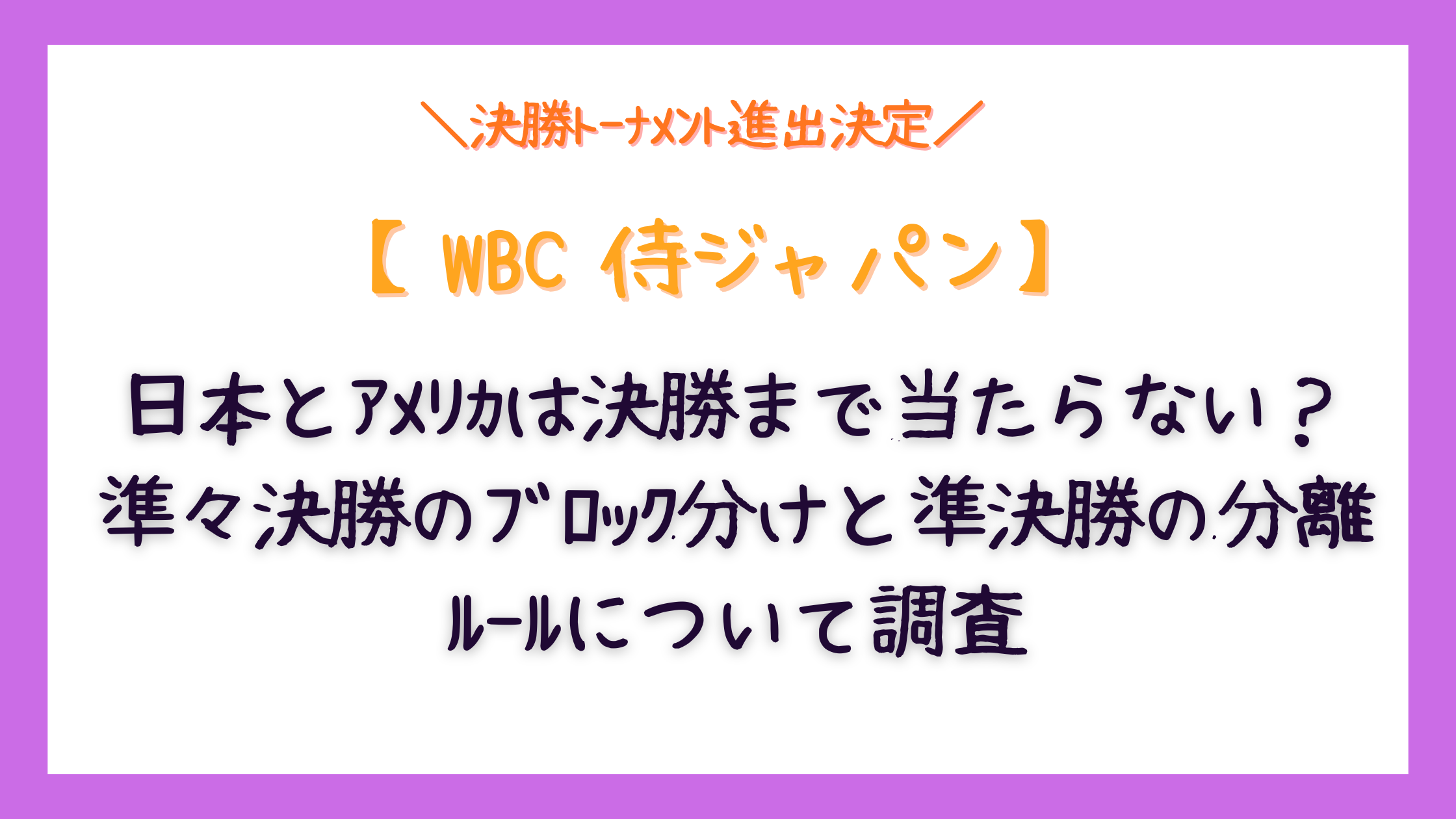 WBC2026のトーナメント形式で、日本代表とアメリカ代表が決勝まで直接対決しない仕組みになっていることが話題です。