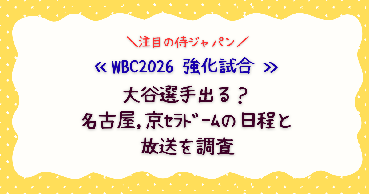 WBC2026強化試合の名古屋・京セラドーム日程と放送、大谷選手出場について調査した結果、次の通りです。